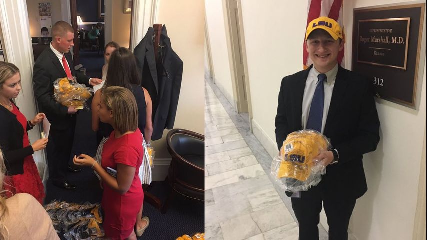 Here go the @LSUbaseball caps! Hill interns are uniting to distribute them. pic.twitter.com/Y1utYPLzDW