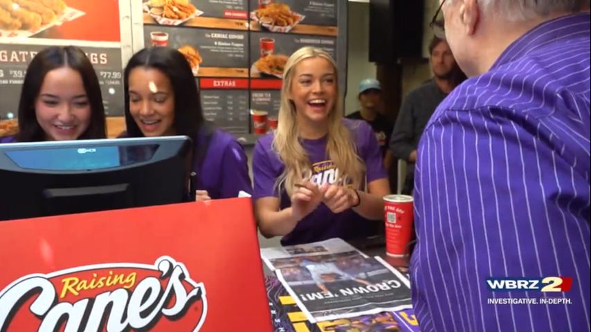 LSU gymnastics team flips routine, works shift at Raising Cane's