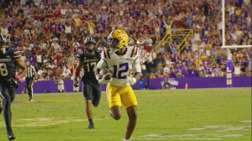On the ensuing drive, LSU marched all the way to the South Carolina 1-yard line, but running back Ju’Juan Johnson fumbled on a rush attempt. The Gamecocks recovered the ball in the end zone for a touchback.