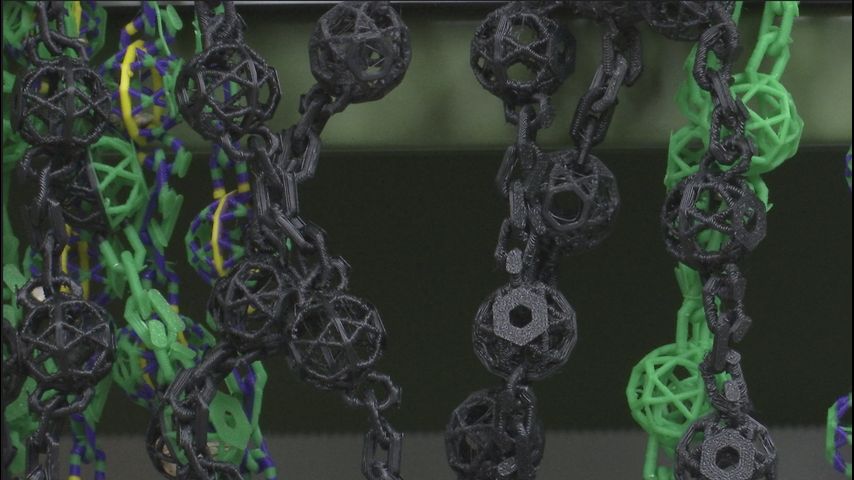 "One of these is made with PHA [polyhydroxyalkanoates]. This is a compound that's made and produced by bacteria. And, because it's made by bacteria, it can be broken down by bacteria. We also have another model that's made with PLA [polylactic acid]. This version, we are currently still working on and testing. This is one of the more commonly used filaments in 3-D printing," Strain said.