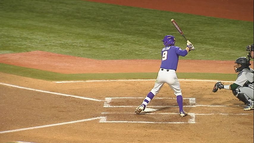 LSU centerfielder Zach Watson taking his first swing over the right field wall for a leadoff homerun against Hawaii to give the Tigers an early 1-0 advantage.