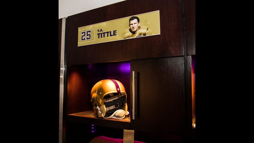 The LSU Football Facebook page shared photos of a locker dedicated to Tittle in the home team's locker room. The locker comes complete with authentic recreation of the jersey, helmet and cleats Tittle wore in the 1940s.
