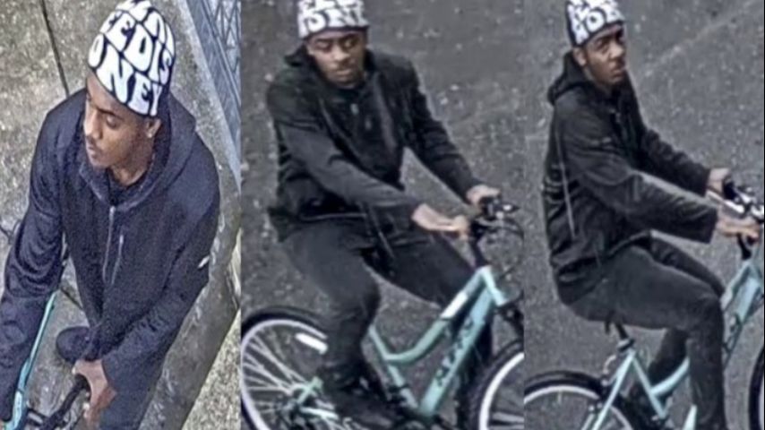 Investigators are attempting to identify the man, photographed on Dec. 28 riding a bike on campus.