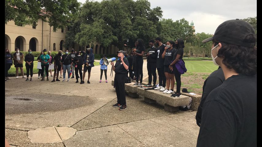 BATON ROUGE - Dozens gathered at the heart of LSU's campus Wednesday, the latest in a series of demonstrations throughout the capital area protesting police brutality in the wake of George Floyd's death.