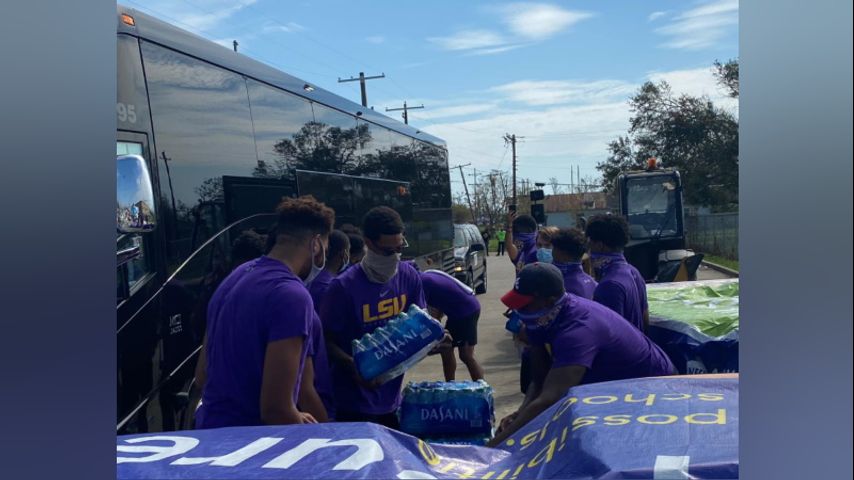 BATON ROUGE - The LSU Tigers left their home turf to help their neighbors to the west who were hard hit by Hurricane Laura.