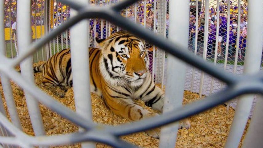 Mike VI is one of only two live tiger mascots in the country. He is 10 years of age. The 420-pound tiger was two years old when he arrived at LSU and lives in a 15,000-square-foot habitat next door to Tiger Stadium. He only appeared in the stadium during one game last season.