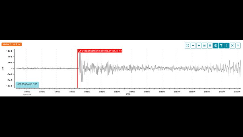 The U.S. Geological Survey told the Associated Press that the quake struck at 10:44 a.m. Pacific — 12:44 p.m. Central — west of Ferndale, a small city in coastal Humboldt County, about 130 miles from the Oregon border. It was felt as far south as San Francisco, some 270 miles away; the area was placed under a brief tsunami warning after the quake and its aftershocks.