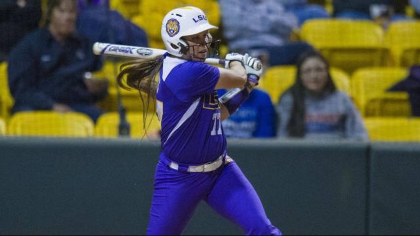 FAYETTEVILLE, Ark. – Down four runs with just two innings to play, LSU softball rallied to score five runs to take the comeback win against the Arkansas Razorbacks, 5-4.