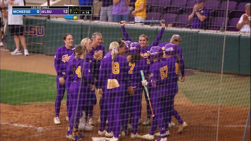 LSU (34-16) recorded its 12th run-rule victory of the year and tallied 14 hits against McNeese (35-19), marking its 10th double-digit hit game of the season.