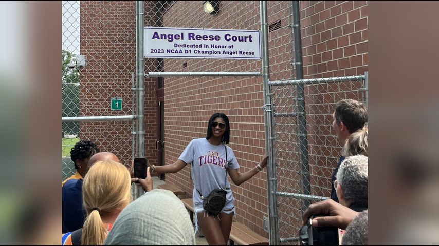 RANDALLSTOWN, Md. - Angel Reese was in Maryland on Monday as LSU super star's hometown unveiled a basketball court dedicated to her.