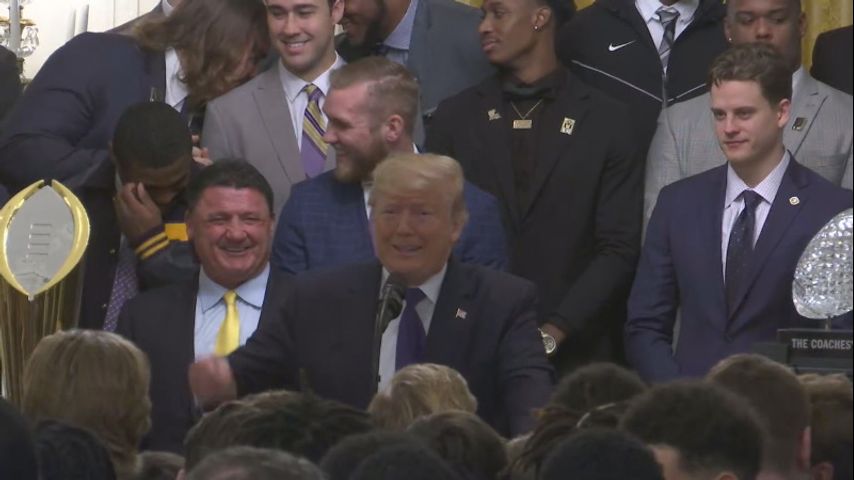 "It's really my great privilege to welcome to the white house the college football national champions. The Louisiana State University Tigers," says President Donald Trump.