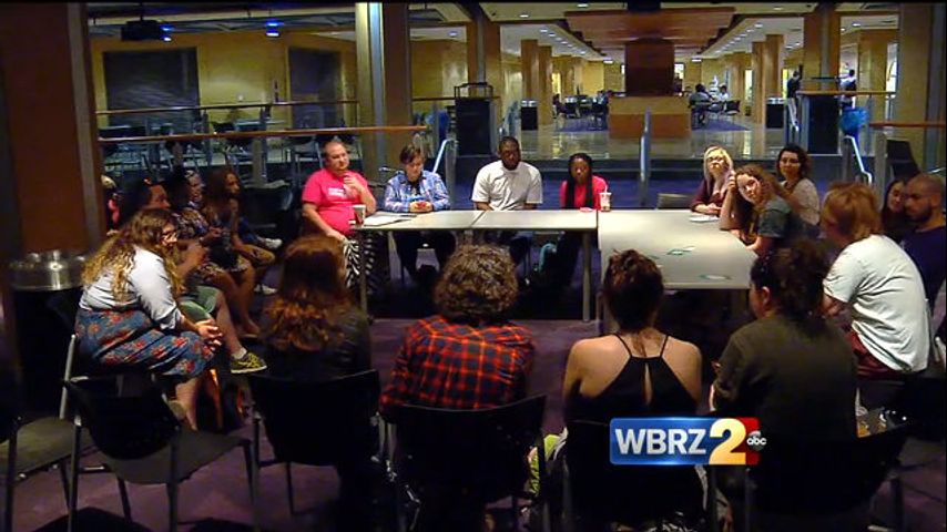 BATON ROUGE - A small gathering of about 30 LSU students rallied together Monday night to discuss what to do about a police officer's comments about rape they found offensive.