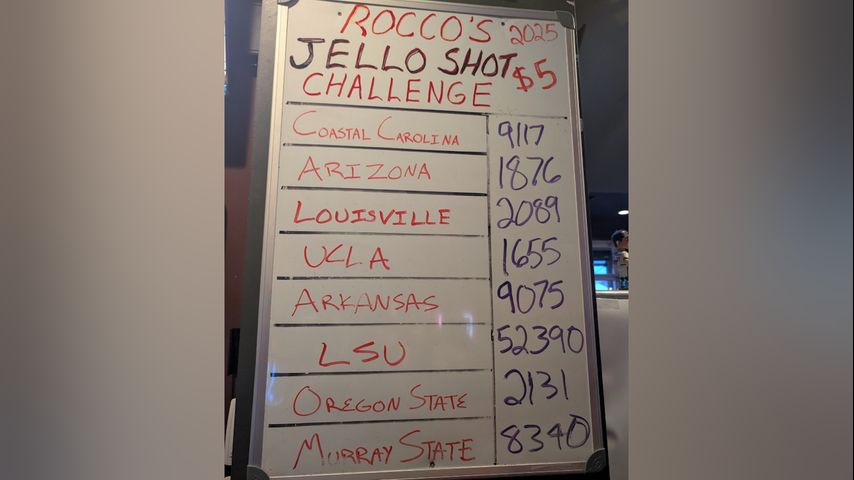 The College World Series runner-up Coastal Carolina took second place in the Rocco's contest with 9,117 shots. LSU's SEC rival to the north, Arkansas, ranked third with just over 9,000 shots.