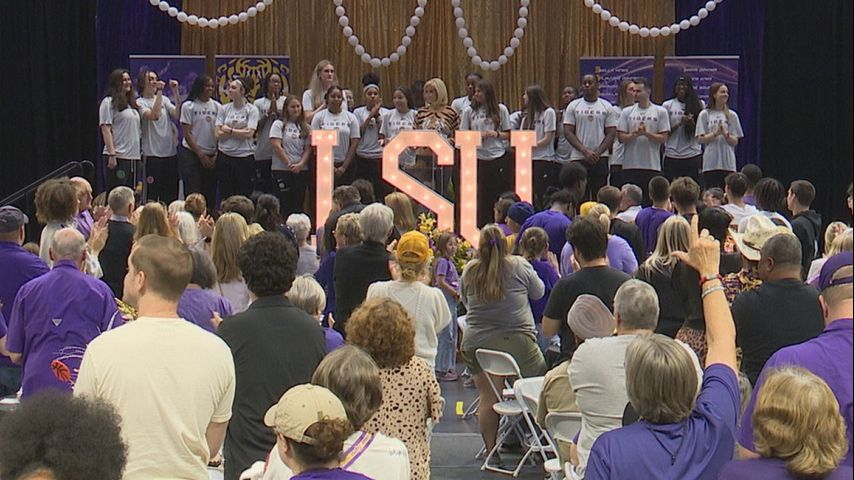 During the program, head coach Kim Mulkey addressed the crowd ahead of her fifth season at the helm. She introduced her coaching and support staff along with her 2025-2026 team.