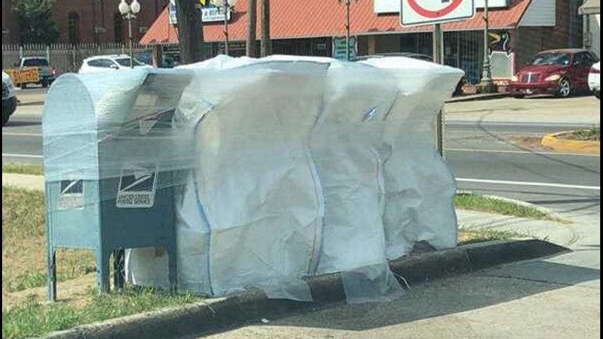 Photos taken Wednesday outside the USPS office on Government Street showed the blue drop-off boxes were wrapped in plastic to keep people from placing mail in the broken receptacles. A post office spokesperson said they're awaiting replacements for the broken locks.