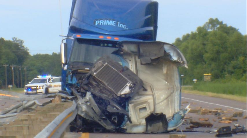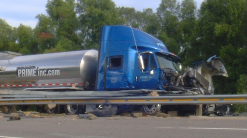 Photos from the scene show an 18-wheeler that had apparently crashed into a guardrail.