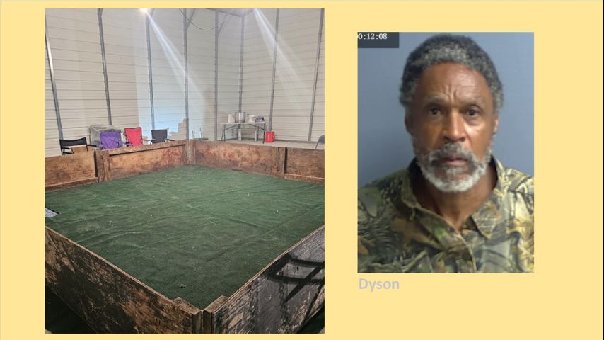 Dyson owned the property where the ring and dogs were found, the sheriff's office said. Vehicles left behind were seized in an effort to determine who owns them. Tangipahoa Parish Animal Services took in the two dogs for medical evaluation and treatment.
