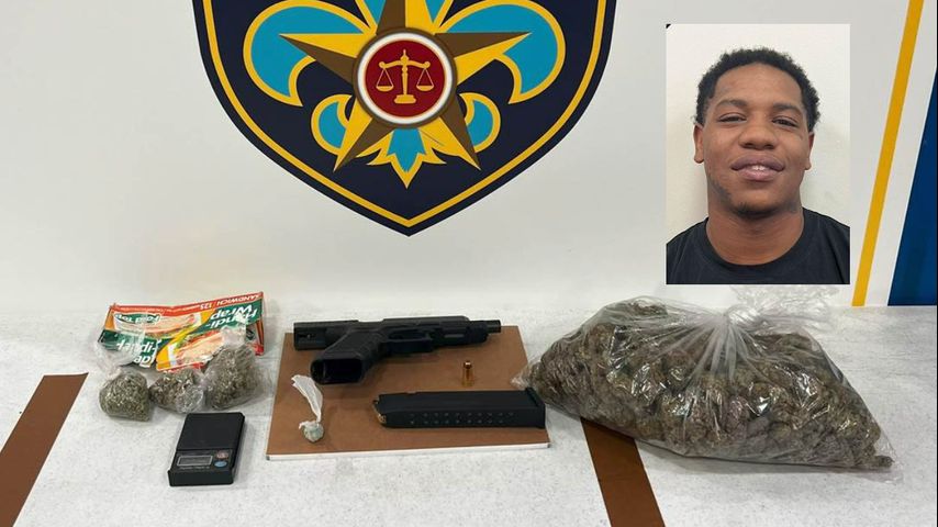 Investigators with the Baton Rouge Police Department found a handgun, multiple bags of marijuana, eight doses of MDMA, and drug paraphernalia.
