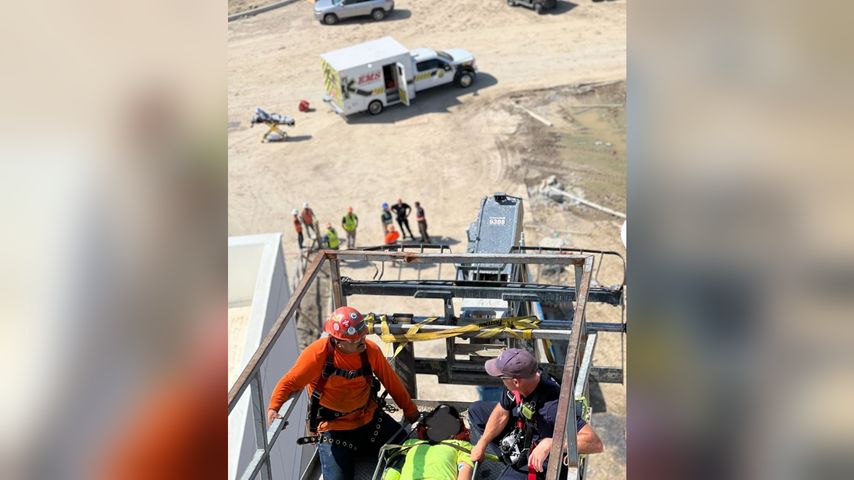 Since there was no elevator access to the fifth floor due to the building still being under construction, Baton Rouge Fire Department had to "think outside the box" to get the man down so he could be attended to.