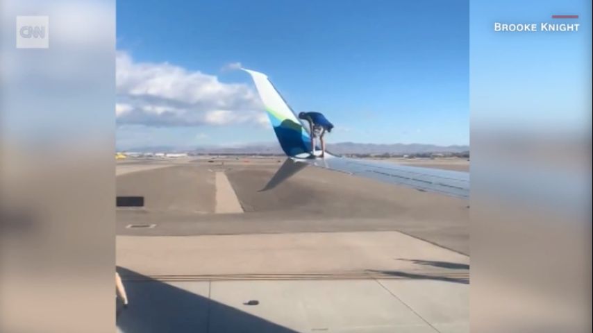 According to CNN, video shot by a passenger shows the man sitting and walking on the wing. He’s seen removing his socks and shoes before trying to climb the Boeing 737's winglet, which is the upturned end of the plane's wing.