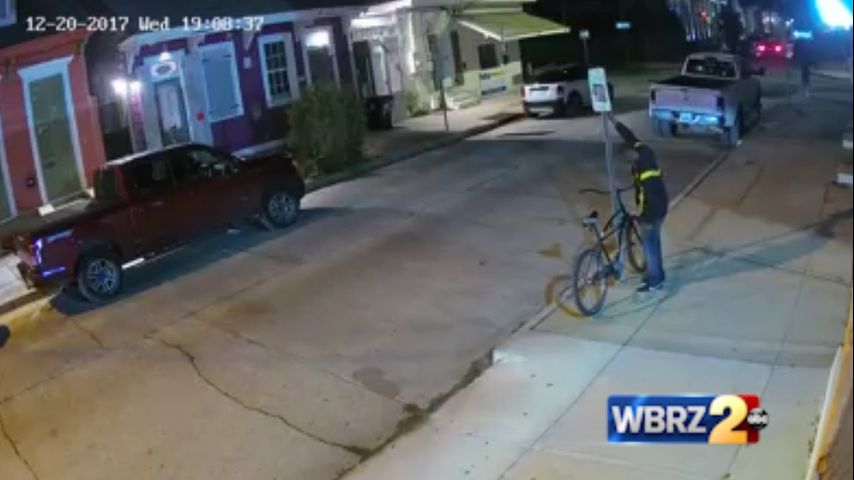In a surveillance video posted on Stolen Bikes NOLA by victim Ray Moose Jackson, a man can be seen unscrewing a street sign that Jackson's bike was locked to.