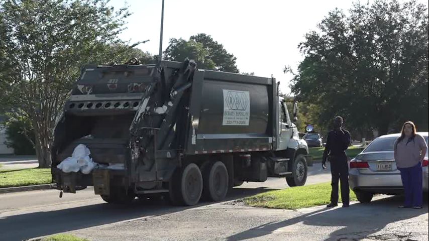 Sources told WBRZ that a car drove into the back of a garbage truck and pinned a worker on Coursey Boulevard between South Sherwood Forest Boulevard and Stumberg Lane, with "possible broken legs" as a result.