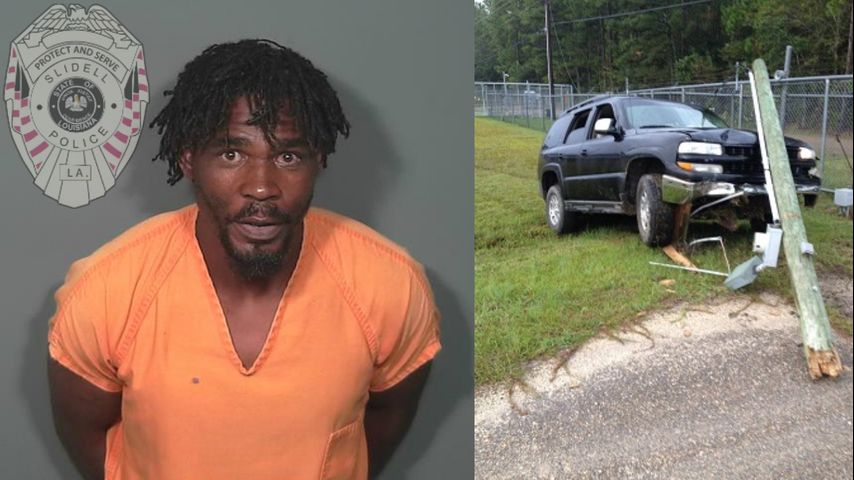 According to the Slidell Police Department, officers received a call around 8:30 a.m. about a crash at Slidell Municipal Airport. When they arrived, they found a vehicle had rammed through an airport fence and crashed into a utility pole.