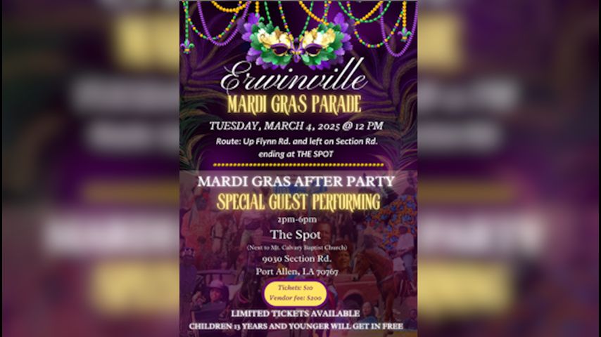 ERWINVILLE - A committee has brought back the Erwinville Mardi Gras parade, which will take place at 12 p.m. on March 4.