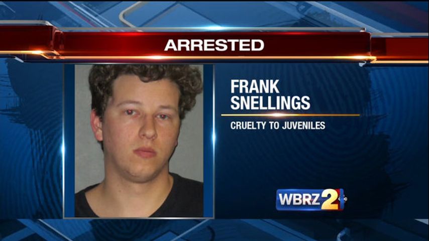 The East Baton Rouge Parish Sheriff's Office says Frank "Connor" Snelling's two-year-old son was taken to the hospital with bruises on his back and face. The child's mother says the bruises weren't there before he was with his father. Snellings told investigators he didn't know where the marks came from.