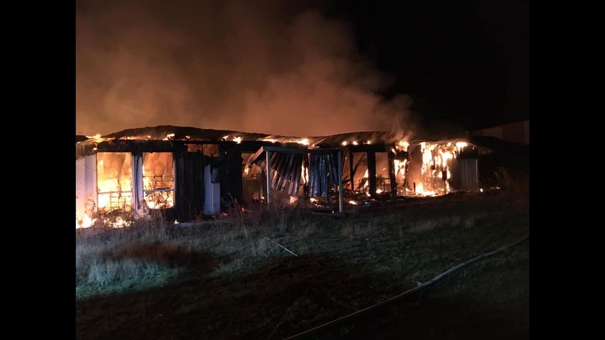 The compound was rocked by “several” explosions as the flames burned through the abandoned facility on W Murray Road, firefighters posted on social media.