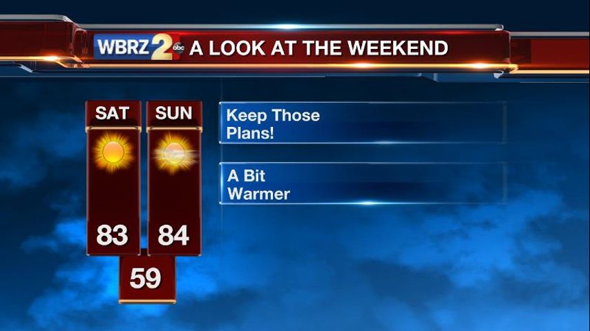 Up Next: Outdoor plans for the upcoming weekend are in great shape. For Saturday and Sunday, expect afternoon sunshine with highs making it to the mid 80s. Sunday will be the warmer of the two days, only by a degree or two. Additionally, there may be a few clouds speckling the skies by afternoon. The forecast for early next week looks persistent. With some returning humidity, highs will be in the mid 80s with lows near 70 degrees. Afternoons may offer a pop-up shower or storm but partly sunny skies are anticipated otherwise.