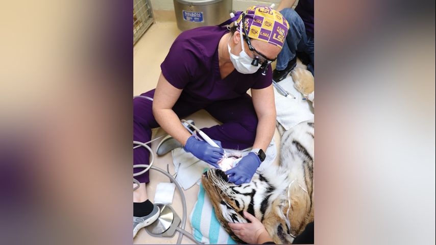 Mike the Tiger receives routine oral cleaning, blood work by LSU Vet Med