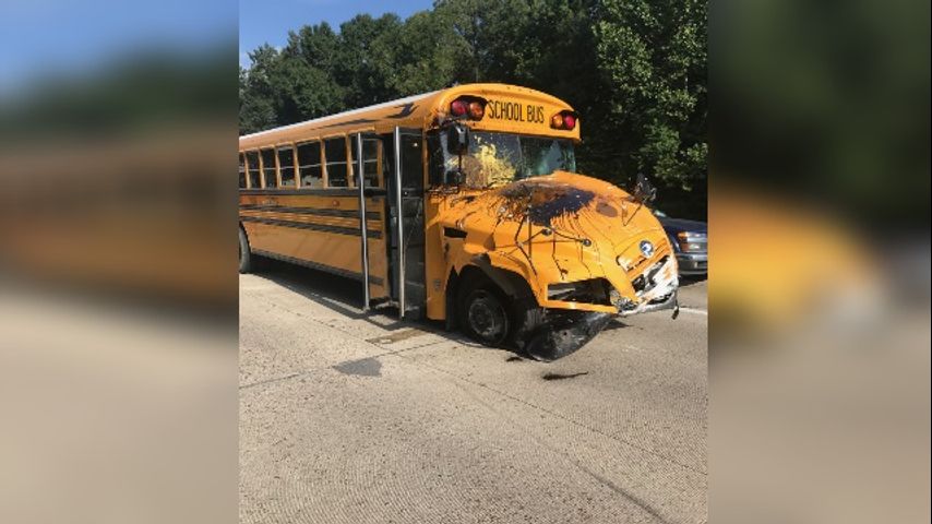 The crash was reported in the 6400 block of Hooper Road. Authorities say there were no children on the bus at the time of the crash.