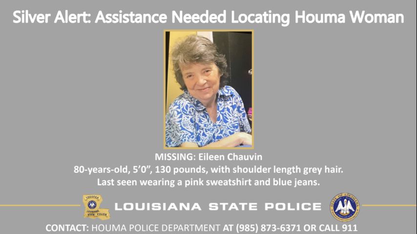 HOUMA - State police issued a Silver Alert for an 80-year-old woman last seen Wednesday night.