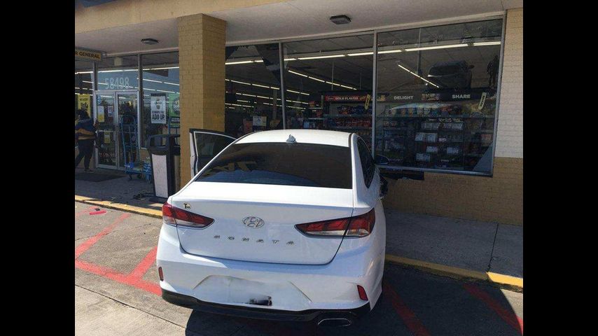 The Plaquemine Police Department said the vehicle struck the Dollar General on Belleview Drive after the child managed to hold down the brake and put the car in drive. Photos posted on social media showed cracks in the building's facade after the crash.
