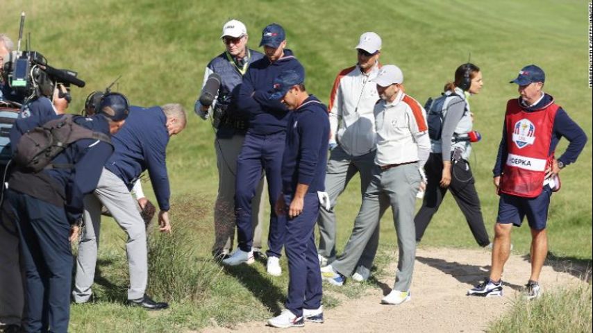 According to ESPN, on the 15th hole at Whistling Straits, U.S. athletes Brooks Koepka and Daniel Berger were matched against the Spanish pair Jon Rahm and Sergio Garcia and Berger's drive appeared to nestle in a small thicket of grass next to a drain.