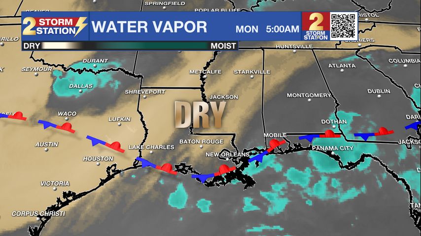 Today & Tonight: A front that moved through over the weekend is now stalled along the coast. This is keeping early morning rain mainly offshore. Behind the front, humidity is slightly lower, making for a more comfortable start to the day with morning temps in the upper 60s to low 70s. Highs will reach around 93° this afternoon in Baton Rouge. With the front staying south of I-10/12, skies will be mostly to partly sunny, and rain chances remain low. Overnight, the front could drift north, resulting in a slight increase in humidity. Tuesday morning temps will start in the mid-70s.