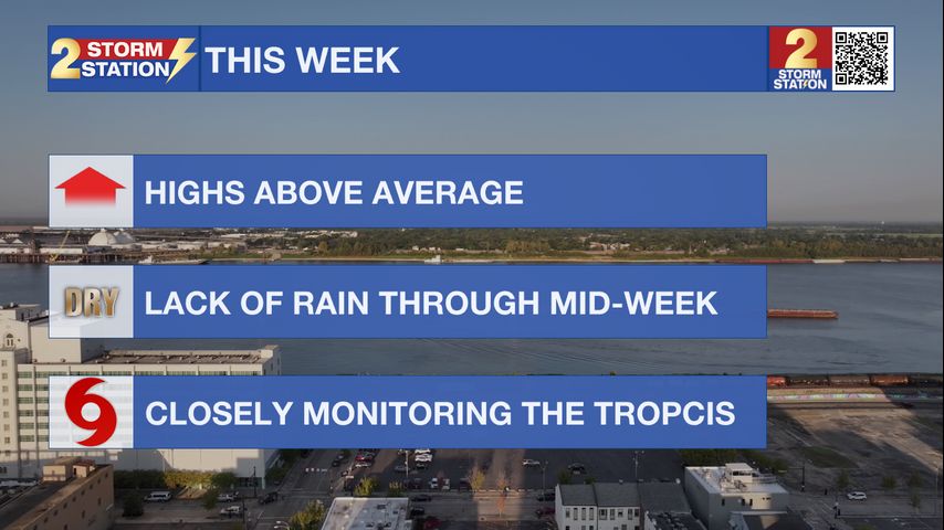 The new workweek will feature mainly quiet conditions with above average temperature for the start of October, but a disturbance could enter the Gulf of Mexico later in the week. Check back in with the Storm Station daily for the latest.