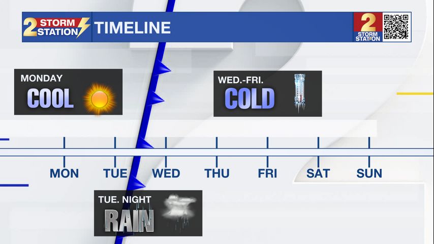 Monday AM Forecast: Winter chill returns this week, Next rain arrives late Tuesday
