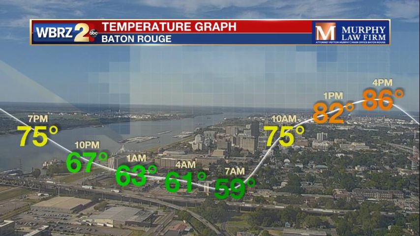 Up Next: Skies will remain mainly clear for the majority of the week. With no major features to alter the weather, high and low temperatures will gain a degree or two each day. By the end of the week, lows will be in the mid 60s and highs will be in the upper 80s. One or two spots could hit 90 degrees on Thursday or Friday. A cold front will sag south through the area on Saturday morning. That system is likely to pass without rain; and it will be followed by a sunny and mild afternoon. Overnight temperatures will return to the 50s Saturday and Sunday nights. CLICK HERE for your detailed 7-Day Forecast.