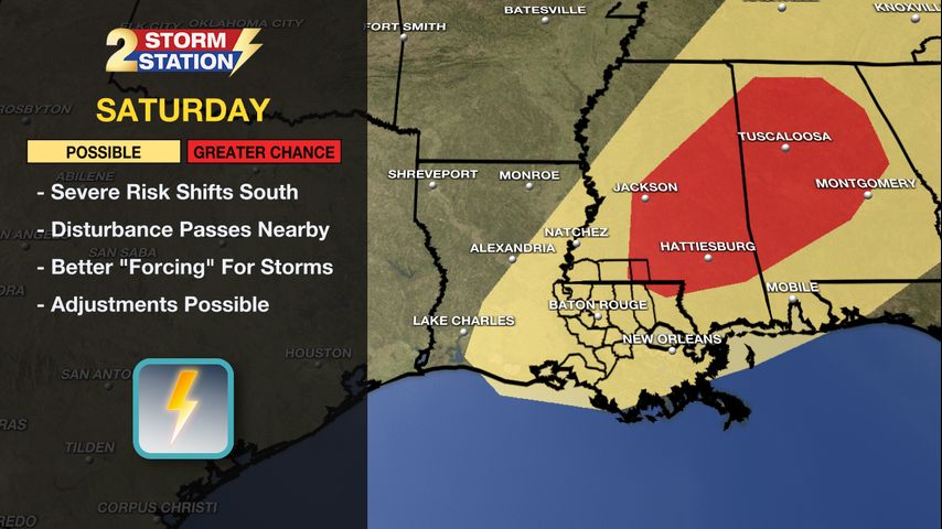 The Capital Area will be dodging spotty storms on Friday, but rain chances climb even higher on Saturday. Numerous showers and storms are likely by then, and a few storms could be on the strong to severe side. While the large-scale pattern looks supportive of stronger storms, the smaller scale features at play won’t be known until later in the week. Many times, it is these smaller features that determine the timing and severity of an event. Stay in touch with the Storm Station through the week as the forecast becomes more refined. The second half of the weekend will fare off a lot nicer with sunshine returning.