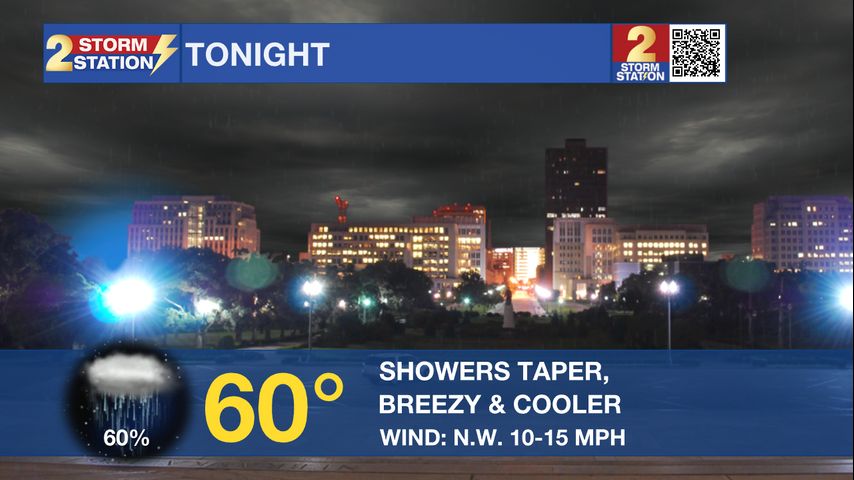 Tonight & Tomorrow: Through the rest of the night, the threat for storms and rain will fade as a cold front makes its way through southeast Louisiana. This will give way to dry, but cloudy conditions for daybreak. Temperatures in the morning will be in the 50's. Temperatures will be falling throughout the day on Tuesday after an early morning cold front. Clouds will stick around throughout the day.