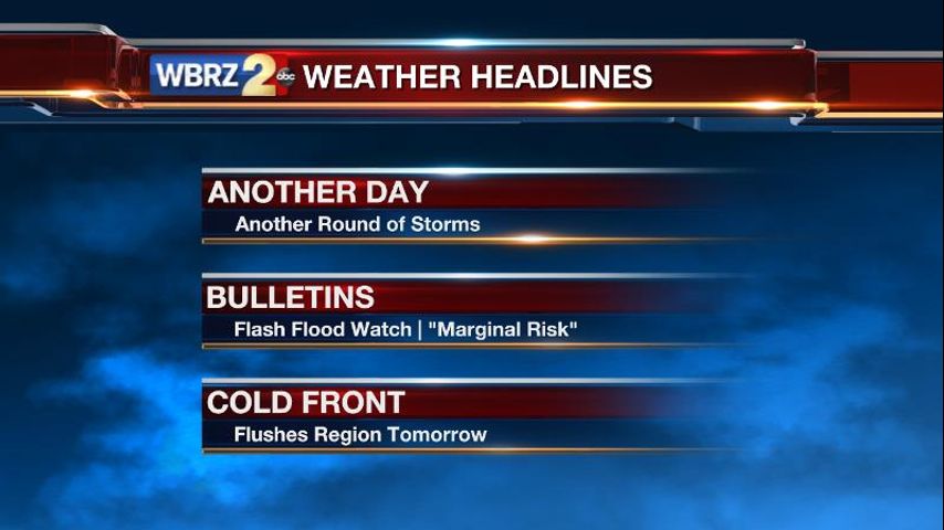 Today and Tonight: More rain and thunderstorms will ring in the new week. Still, heavy rain remains a concern and the FLASH FLOOD WATCH is posted through this evening. An additional inch is possible with locally higher amounts. Let’s not put any cars in puddles, keeping in mind, TURN AROUND DON’T DROWN. If a road is flooded over, DO NOT attempt to drive through. We’ll find an alternate route to get where we need to go. Much of the storminess will occur during the first half of the day. The heaviest and steadiest action will be along and south of I-12. The afternoon will be mostly cloudy otherwise with temperatures struggling to reach 80 degrees. Overnight, the showers will slacken with low temperatures in the mid 60s.