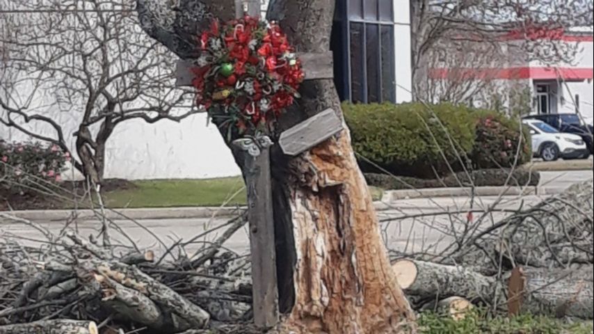 BATON ROUGE - A dying tree on Industriplex Boulevard off Siegen Lane is the last to be removed from the median, and it's emotional for Dee Babin.