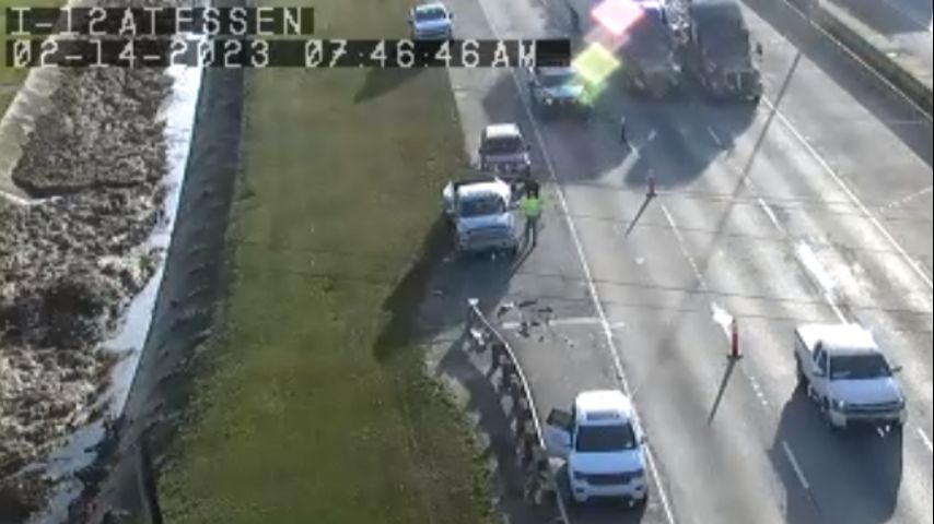 The crash happened Tuesday morning around 6:30 and involved at least four vehicles as seen from DOTD traffic cameras. It was a pileup on I-12 westbound at Essen Lane that initially blocked two right lanes, was moved to the shoulder, and then blocked one right lane again.