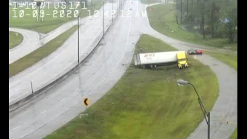 Semis tossed around on interstate as Delta moves toward Lake Charles