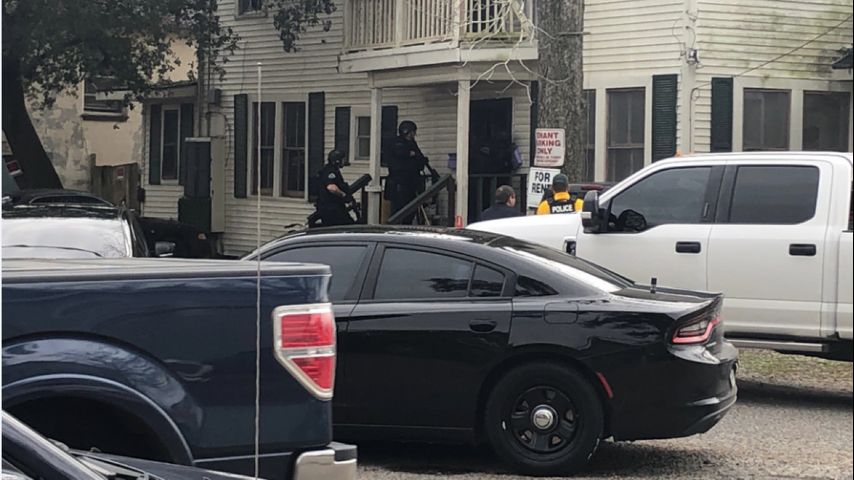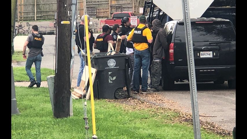The raid happened off East State Street Friday afternoon, just behind the Raising Cane's restaurant on Highland Road. Cameras were rolling as Baton Rouge police officers armed with rifles and equipped with body armor entered the home and paraded people out the front entrance in handcuffs.