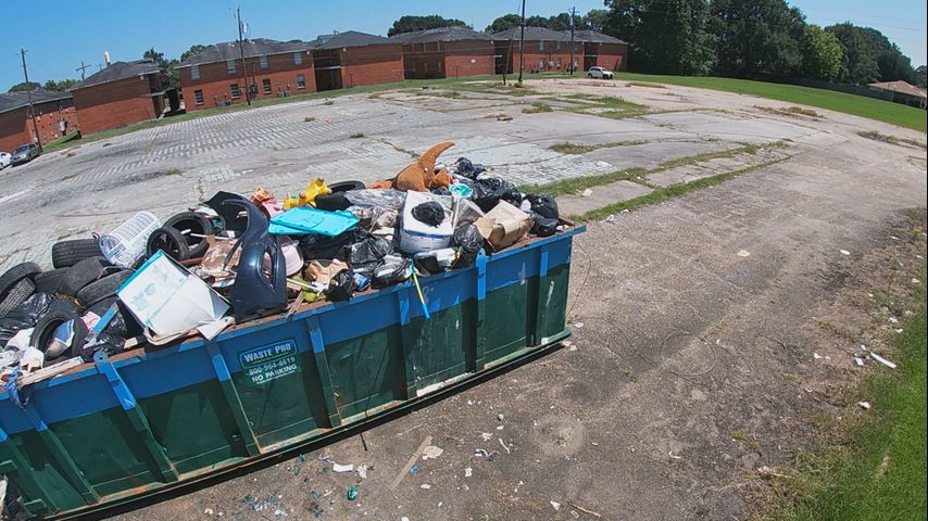 BATON ROUGE - A large metal dumpster full of garbage has become a neighborhood's latest mystery.