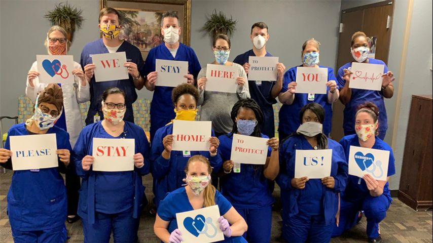 The messages greeted healthcare workers as they left the parking lot Thursday evening.