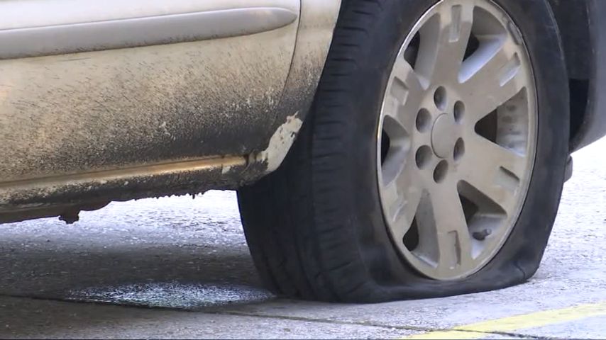 Mystery debris damaged roughly a dozen cars on busy I-10 exit ramp Friday morning